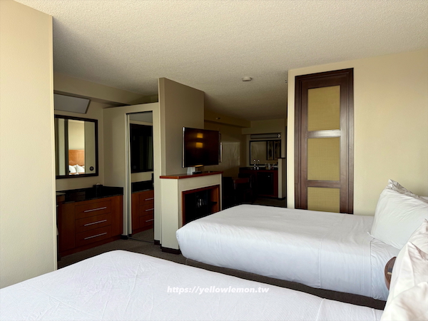 我們被升等至 Two Double Beds (with sofa bed),房間面積達 480平方英尺,相當寬敞,是帶大客廳的 studio。