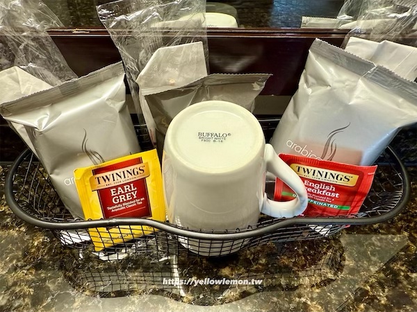 提供咖啡和茶包。