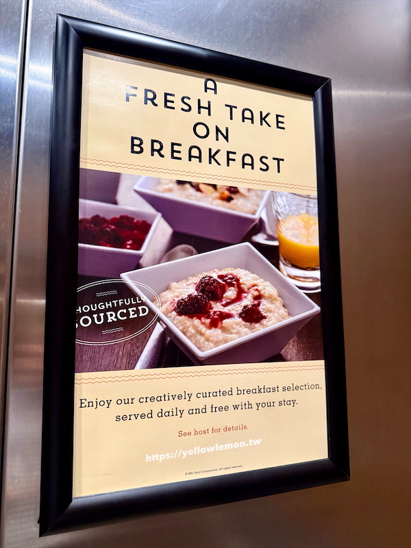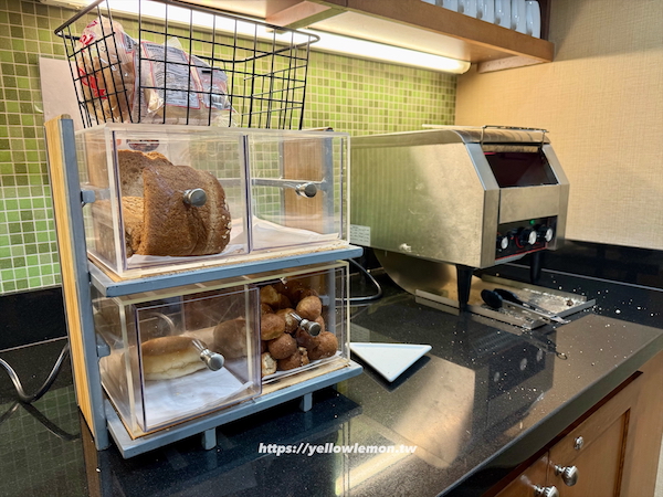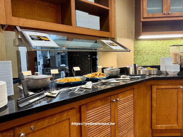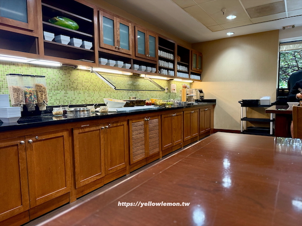 飯店早餐採自助式,餐點選擇與 Hyatt House 相比少了一些,但基本款都有,像是麵包、吐司、水煮蛋、肉腸等,菜色每天會稍做更換。