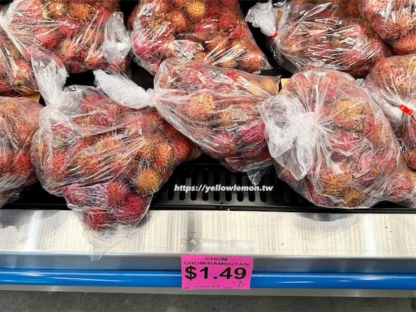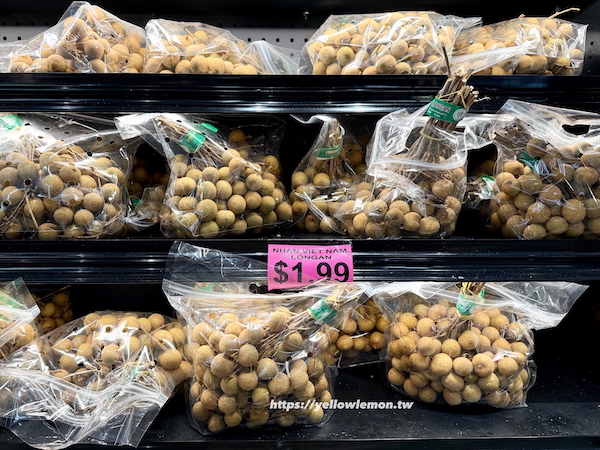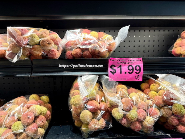 Lee’s Supermarket 的水果區也非常豐富,除了常見蘋果、香蕉外,還有許多東南亞與台灣常見的熱帶水果,像是龍眼、荔枝、紅毛丹通通有,而且品相都不錯。