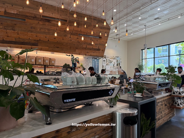走進 Santa Cruz 的 Verve Coffee Roasters,首先會被它的室內設計吸引,明亮的自然光、大量木質元素與綠意植栽,營造出充滿生活感的空間。