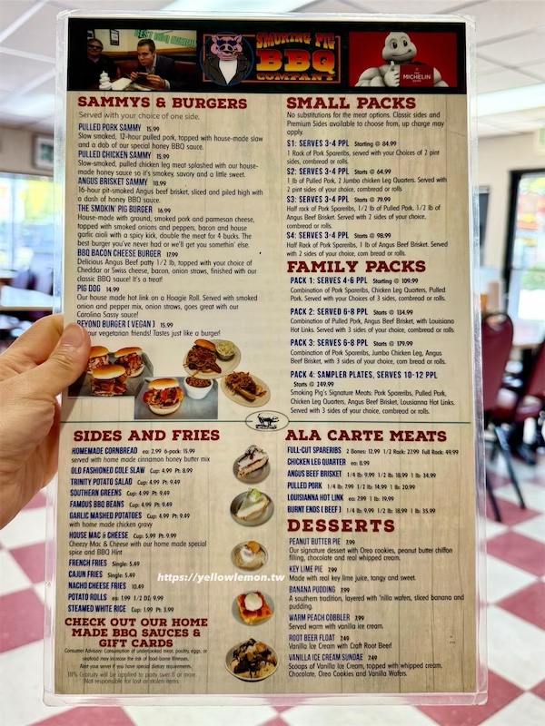 Smoking Pig BBQ的菜單分為: