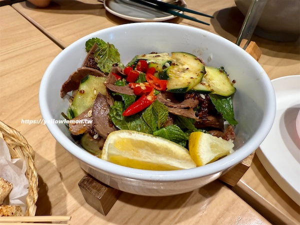 切片鮮卤牛肉搭配檸檬與薄荷,口感清爽,是很適合開胃的前菜。