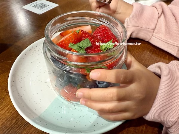這杯是小朋友最愛的新鮮草莓與藍莓,有了它大人們才能好好聊天啊。
