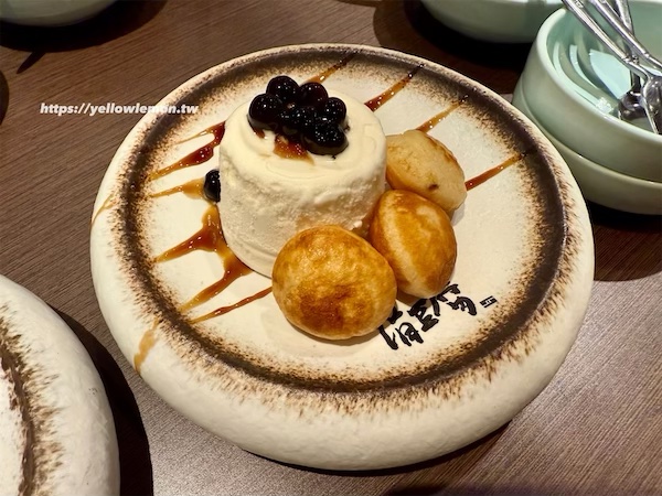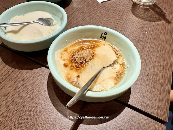 這個很特別,採用非基改黃豆製作的豆腐冰淇淋,淋上甜蜜的黑糖珍珠增添風味,每一口都能嚐到炭燒豆香,是個完美的收尾。