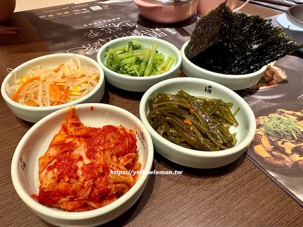 吃韓式的一大重點就是小菜!涓豆腐在這部份也不馬虎,泡菜、海帶外還有綠色蔬菜超加分,而且還提供海苔,海苔包飯小朋友最愛了啊!每一樣都可以無限續喔!