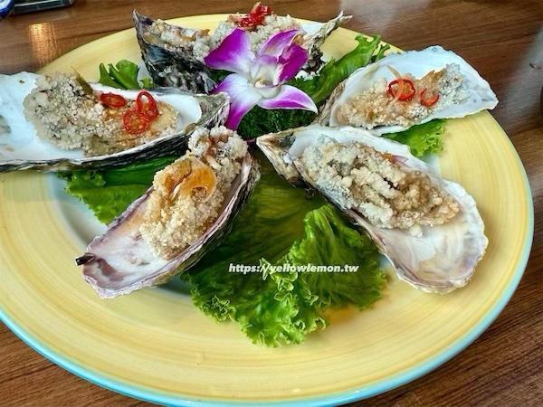 牡蠣炸得外酥內嫩,還會放回殼中擺盤,視覺效果滿分。