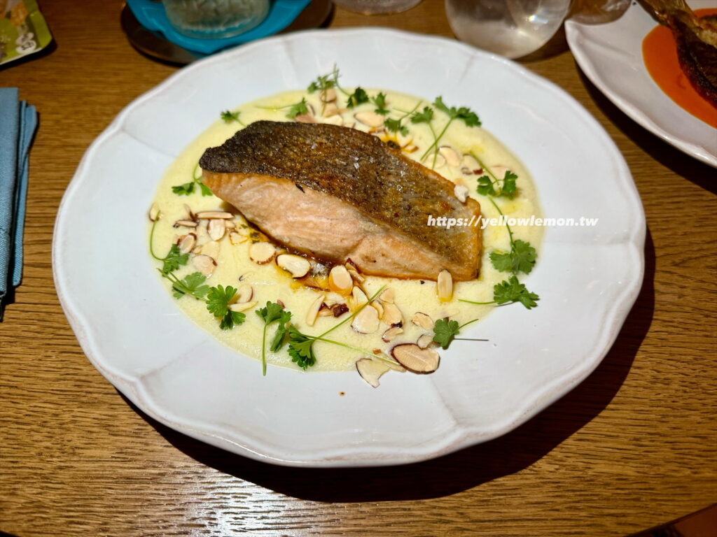 Ora King Salmon 的熟度處理得非常好,一切開就是鮮嫩的粉橘色,油脂分布均勻但吃起來不會膩。調味很剛好,是走地中海風格的清爽派,不會搶味,反而更凸顯鮭魚本身的香甜。