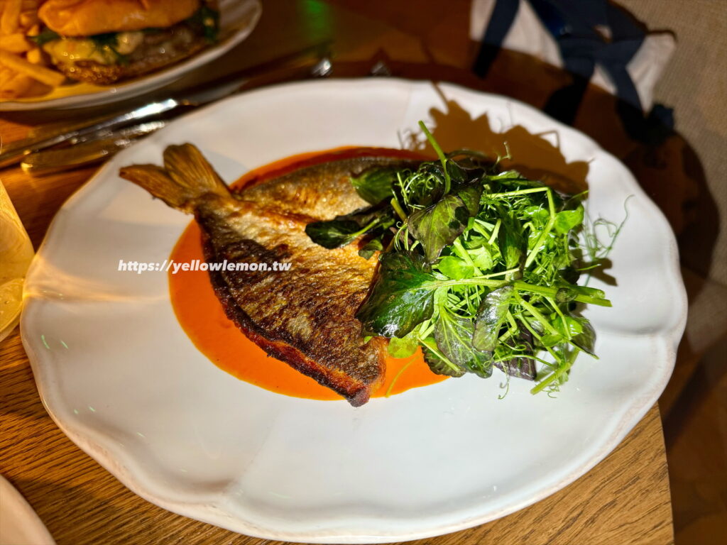 Grilled Sea Bream 上桌時香味很明顯,烤過的焦香讓魚皮脆脆的,魚肉非常嫩。調味同樣是地中海風,帶點香草和檸檬提味,清爽但有層次,不會覺得單調。