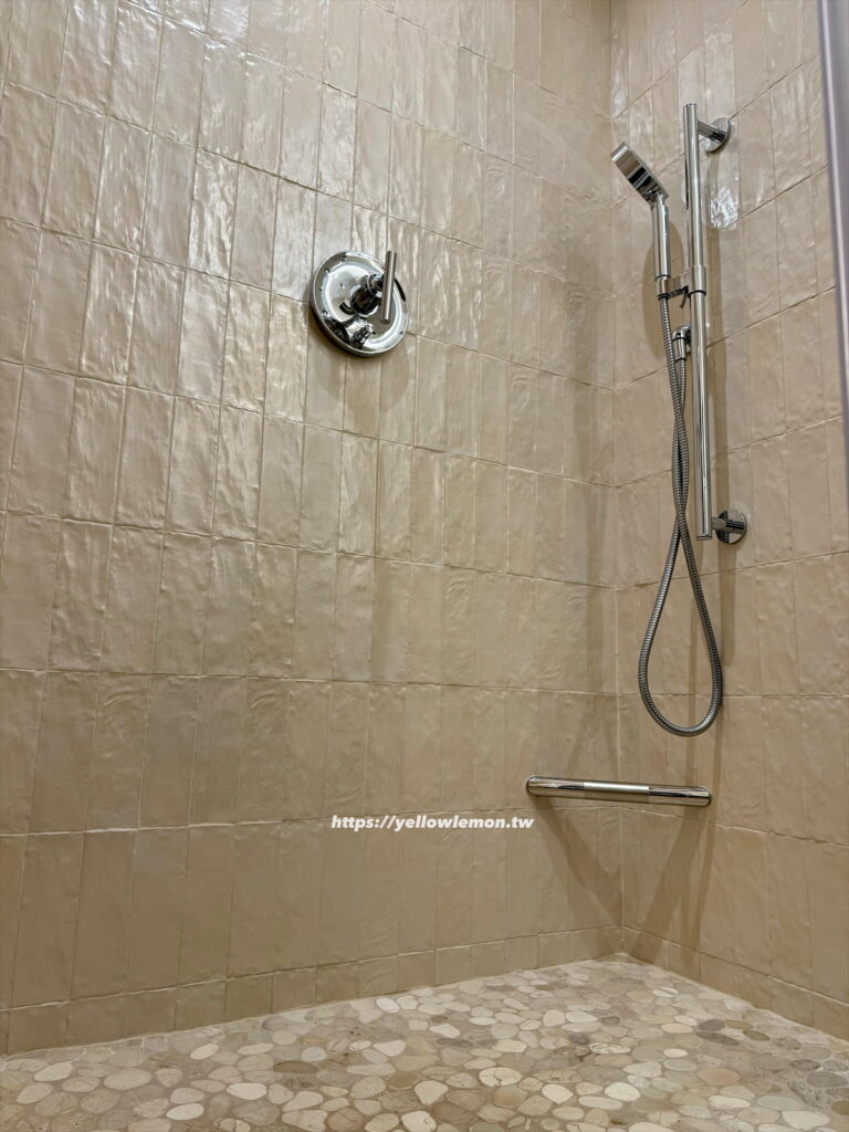 浴室是雙洗手台的設計,淋浴間很大,同時有花灑與蓮蓬頭。