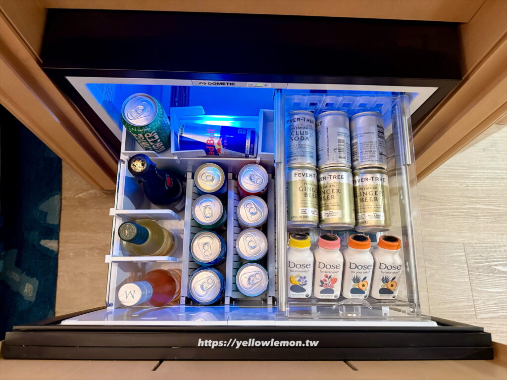Mini bar 東西超齊全,酒水飲料、零食都有(當然都要另外付費)。