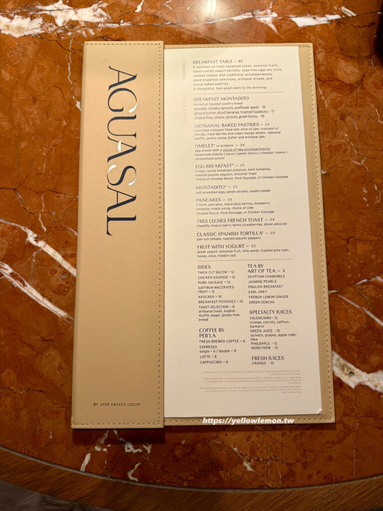 凱悅環球客享有的免費早餐是在一樓的 AGUASAL 餐廳 用餐,可選單點或 Buffet。