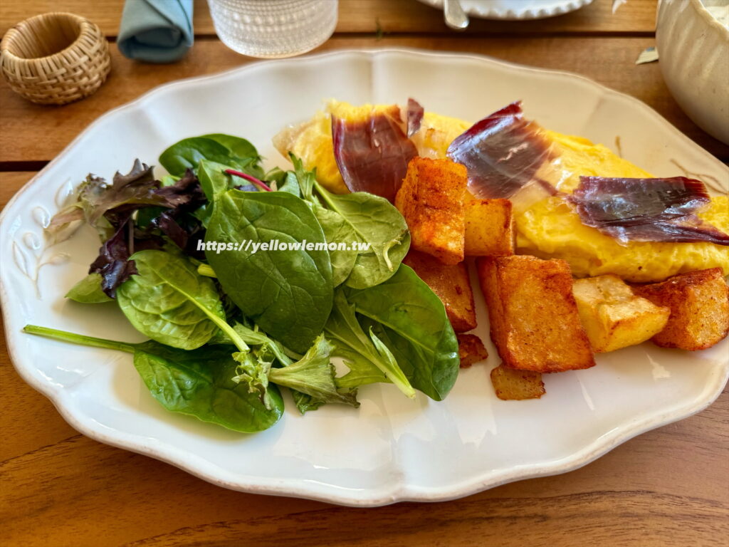 蛋料理直接跟服務生點,也可以點歐姆蛋,只是配料有限制,像肉類要再加價,我選了起士、菠菜和蕃茄。