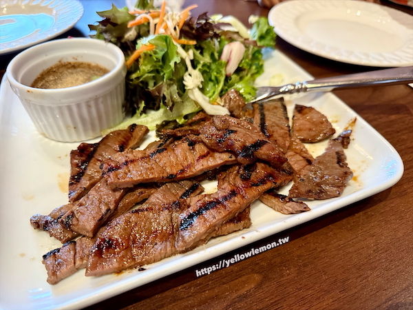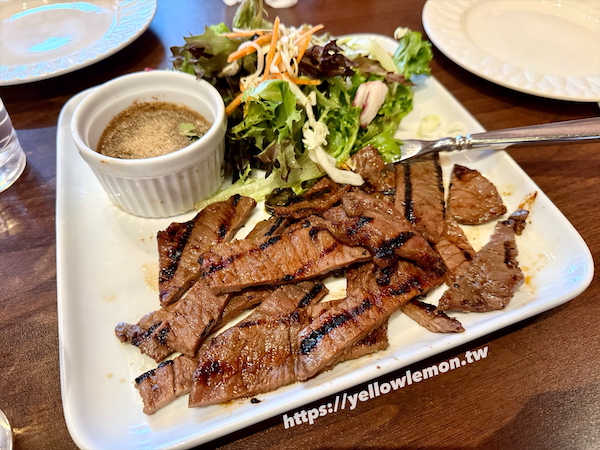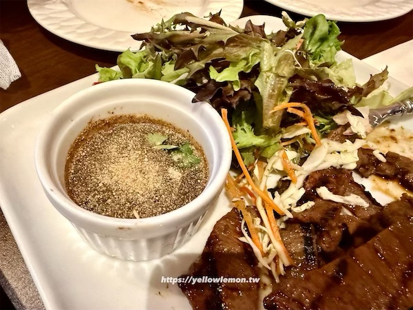 BBQ 牛肉附沙拉,味道中規中矩,不過偏甜。我自己吃不太習慣,但老公超愛那個沾醬。
