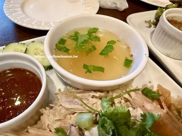 泰式雞肉飯 附湯,湯頭有種台灣小吃攤的味道,蠻懷舊的。
