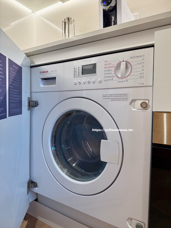 這個房型最加分的地方,就是房間內直接配置洗脫烘一體的洗衣機。對長天數旅行來說,真的差很多,衣服可以直接在房間洗好,行李就不用帶太多,也不用特地找洗衣店。