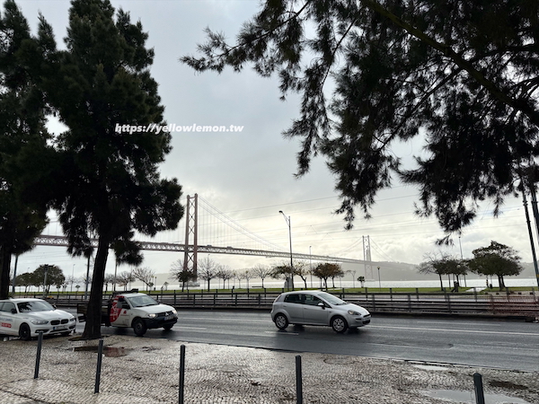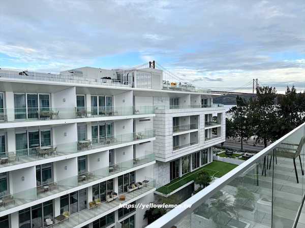 陽台下方是飯店中庭,往遠方看可以看到 Tagus River,以及非常有代表性的 25 de Abril Bridge,白天跟傍晚的景色都很舒服。