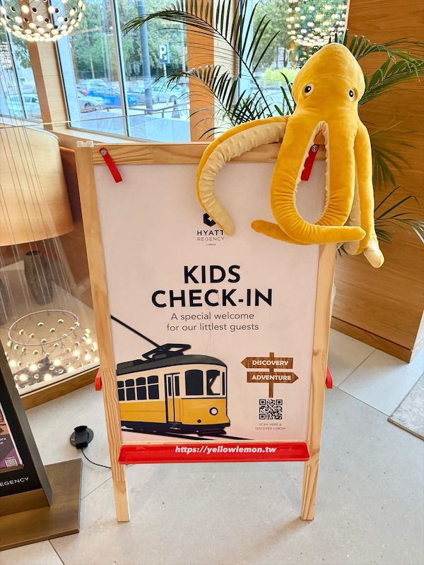 里斯本凱悅酒店對小孩的友善程度,從入住那一刻就能感覺到。大人辦理入住時,小孩有專屬的 Kids Check-in 區域。
