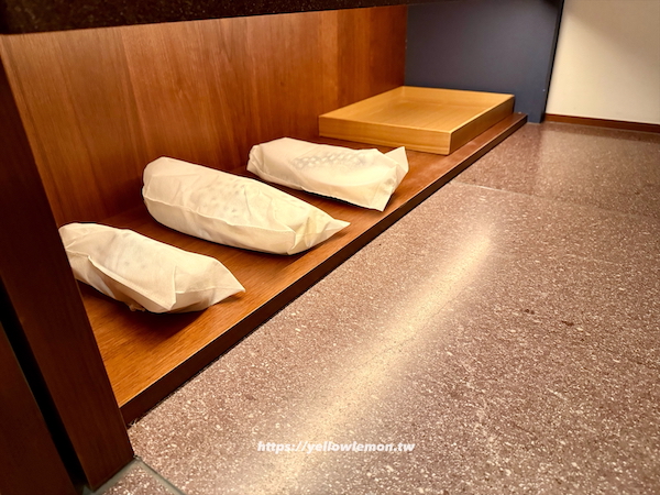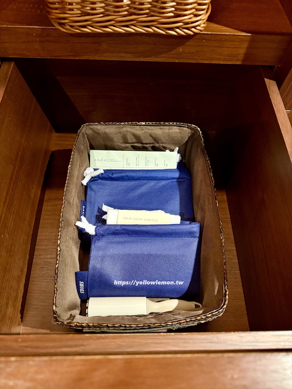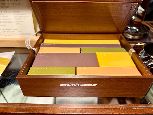 盥洗用品被放在一個木盒裡,像是在開什麼日式糕點一樣,很特別也很用心。