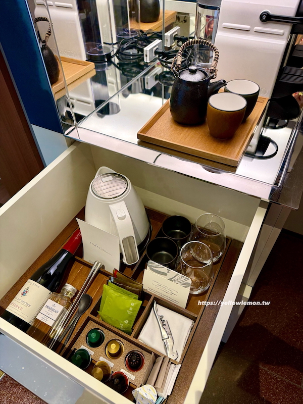 房間裡的mini bar,除了酒精性飲料外都是免費的,不用想太多就能直接拿來喝,這點在東京住宿裡其實蠻加分的。