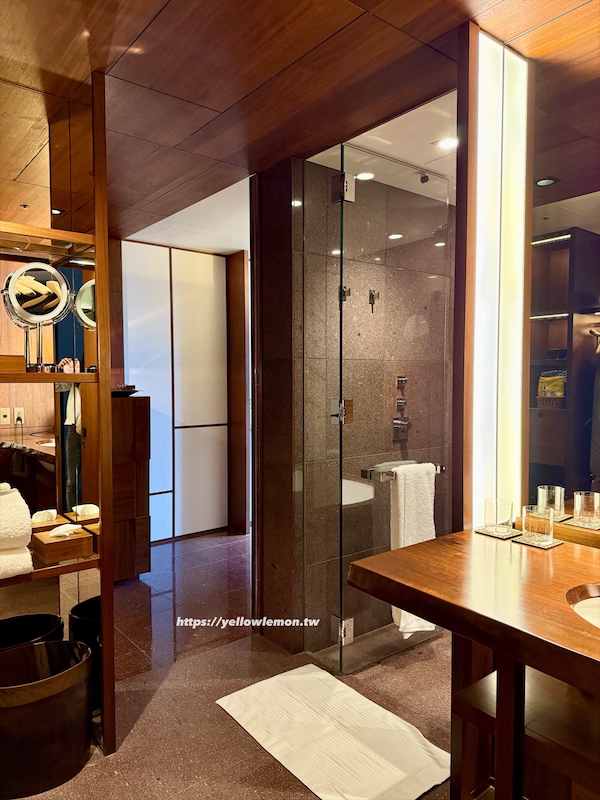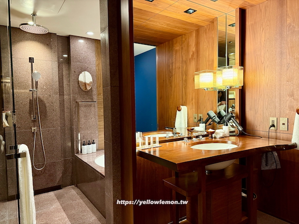 Andaz客房配置中的浴室規劃也很強大,空間被分成廁所、更衣間、洗手台和浴缸、淋浴區,每一個區塊都不擁擠。