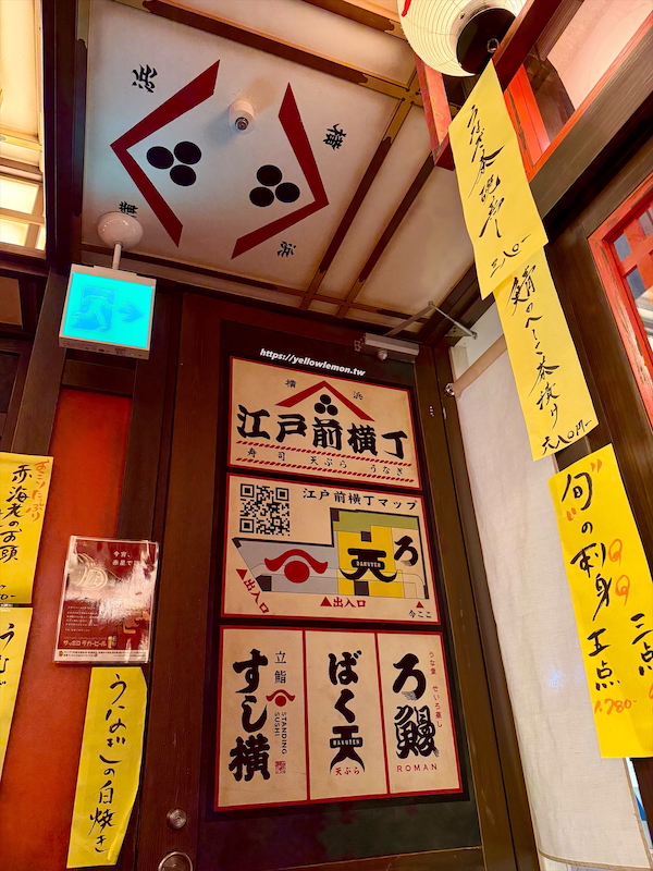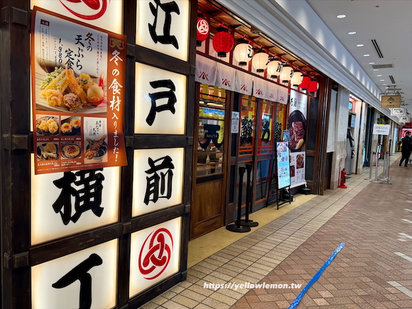 江戸前横丁 横浜PORTA 店位於地下街,這裡集合了三種料理,包含立鮨 すし横(壽司)、天ぷら ばく天(天婦羅)和うなぎ ろ鰻(鰻魚)。
