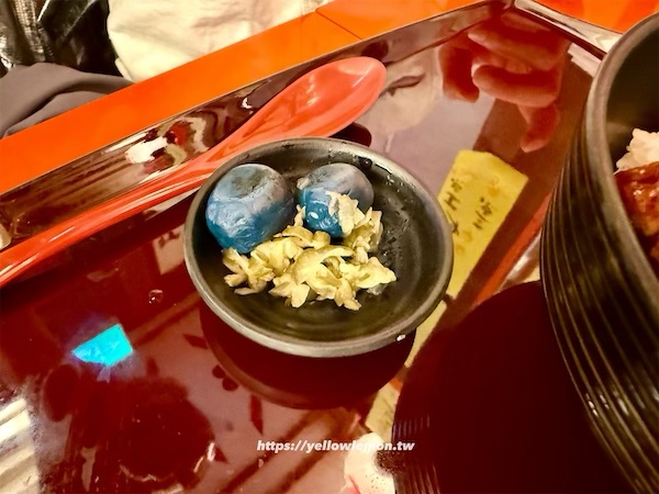 鰻魚丼有附湯與漬物。