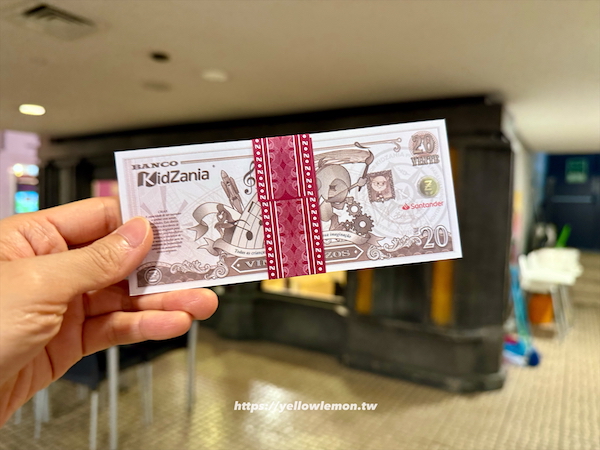 入場後,孩子會先拿到一疊 KidZania 專用鈔票,可以直接花用,也能存進銀行下次再領。城市裡每個體驗點都有清楚的標示,包含所需時間、年齡限制,以及是付錢還是領薪水。