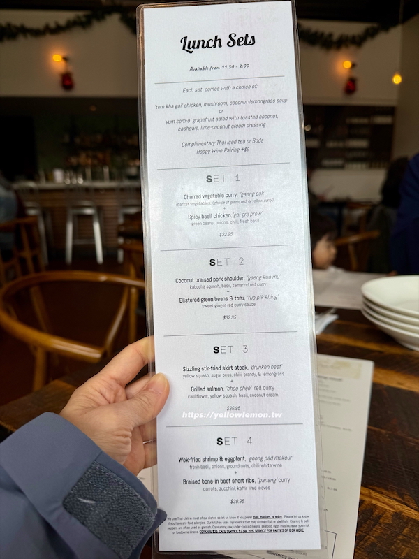 平日中午 Soi 4 Bangkok Eatery 有提供午間套餐,價格在灣區算是相當友善。以實際份量和口味來說,這樣的定價很有誠意。