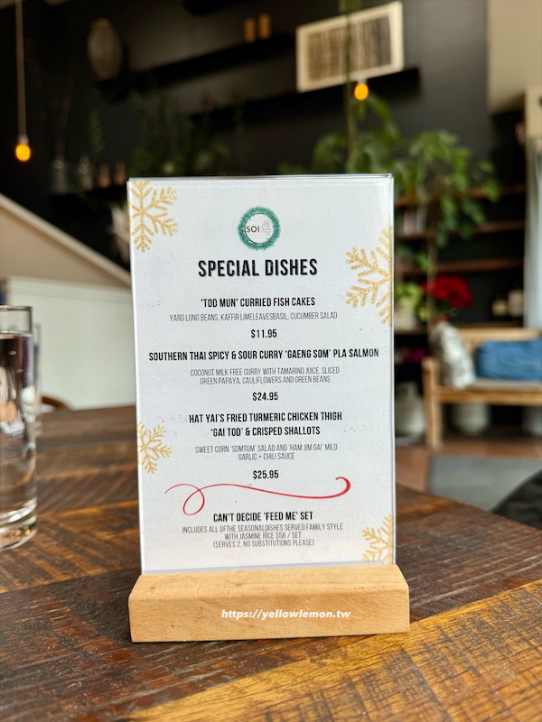 就像曼谷這座城市一樣,餐廳的菜單是在傳統基礎上加入現代感的詮釋,選用新鮮的在地食材,搭配永續的料理理念與創意手法,做出忠於泰式精神、卻不拘泥形式的料理。這裡不標榜「融合料理」,而是把每一道菜當成一個起點,一個值得繼續探索的開始。同時這家也獲選為2022年 Oakland’s Best Thai Restaurants