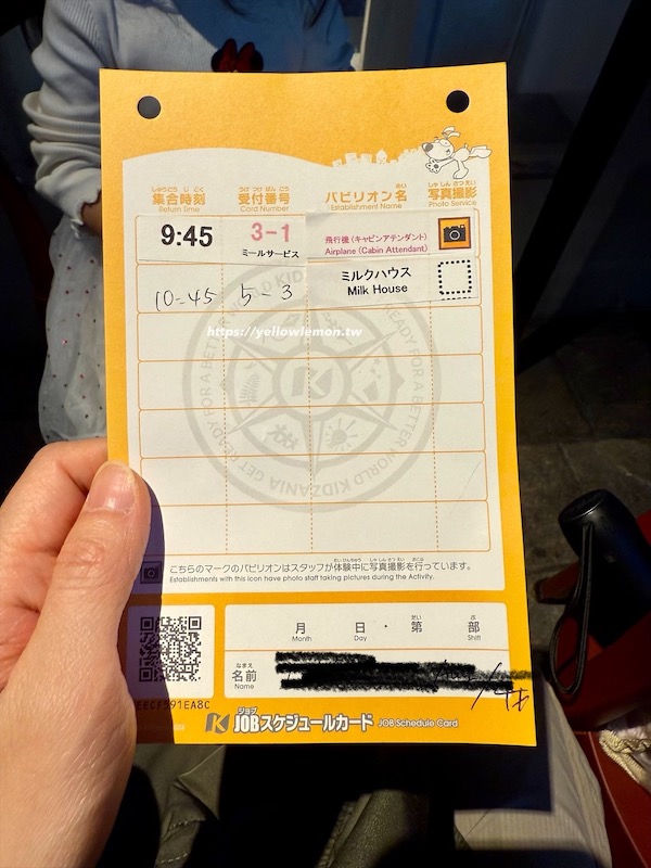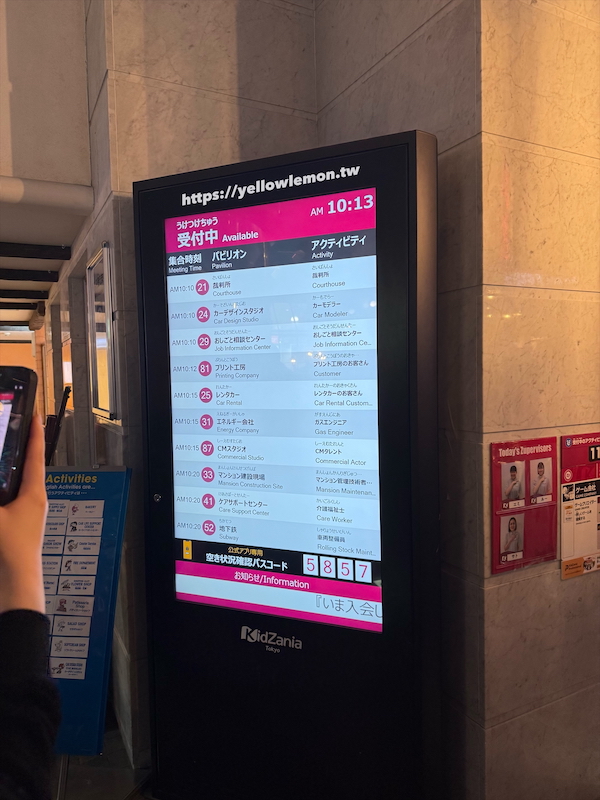 日本 KidZania 的規定相對多一點,每一個體驗都需要孩子親自排隊、親自預約,家長不能代排或代約。同一時間最多只能預約兩個活動,而且時間必須剛好能銜接得上。實際玩下來會發現,雖然場次長達六小時,但因為活動開始時間集中,等待時間其實不少,能完成的項目並不多。