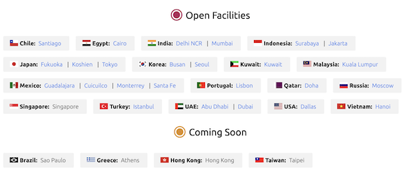 KidZania 目前已發展成遍佈全球的兒童體驗設施,截至 2025 年 12 月,KidZania 已進駐 17 個國家、26 個城市,例如以下等地。