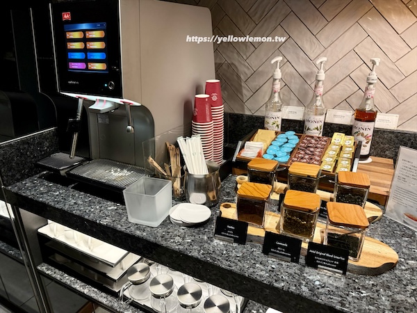 晚上的點心時段(19:00-20:00)則有蛋糕、餅乾等小點。此外,整天都有冷熱飲可以自取,出門前、回房前都能來這喝一杯,很方便。