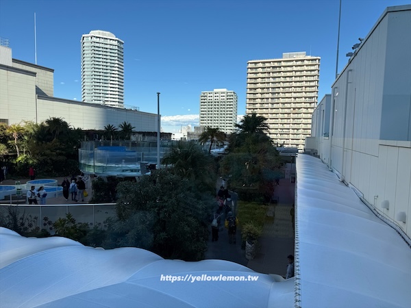 戶外區域設計成開放空間,最有代表性的就是「天空企鵝」與「陽光環形水槽海獅區」。透明水槽以高樓為背景,動物在水中穿梭時,彷彿漂浮在城市天際線之間,畫面乾淨而療癒。